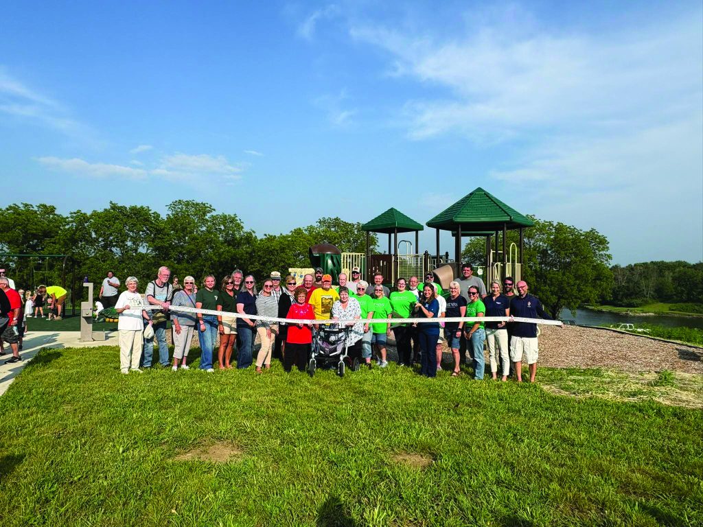 Chamber Ambassadors, Marshall County Conservation Board members and Open House guests cut the ribbon on the Nature Playscape September 13 at GrimesFarm & Conservation Center (2349 233rd St.). |