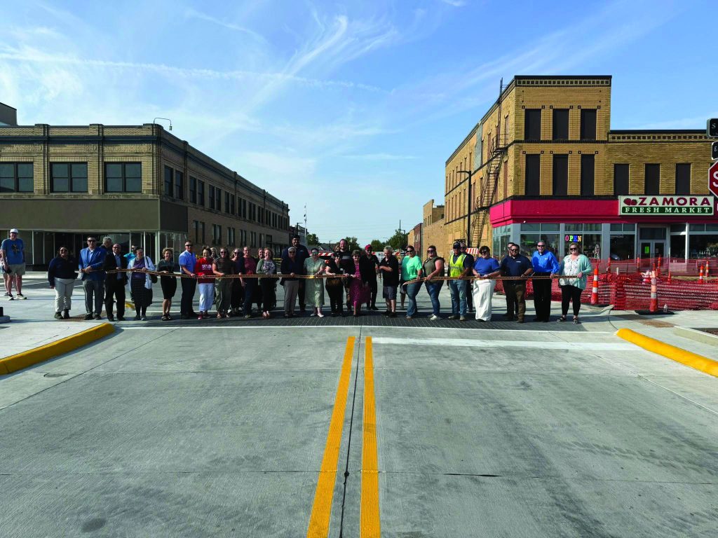 On August 22, Rex J. Ryden, his family, Chamber Ambassadors, and community leaders cut the ribbon on Rex Ryden Rd., an extension of South Street at 18th Avenue in the Marshalltown Industrial Park. |